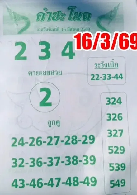 ย่อหน้าท้ายสุดก่อนทิ้งท้าย : แนวทางหวยบ้านกีฬา (งวด 16 มี.ค. 2569)
