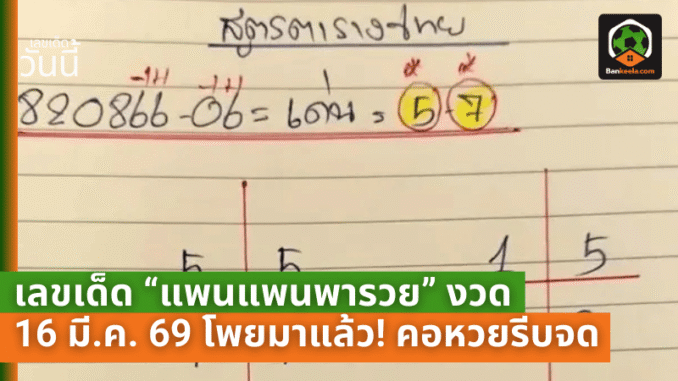 งวดวันจันทร์ที่ 16 มีนาคม 2569 สายตามเลขต้องไม่ปล่อยผ่าน เพราะ “แพนแพนพารวย” ปล่อยชุดตัวเลขที่คัดจากแนวสถิติและการจับจังหวะเด่น-รองมาให้แบบชัดเจน เหมาะทั้งคนที่ชอบเล่นเป็นคู่ เล่นเป็นชุด หรือจะเอาไปแตกไลน์ “กลับ-เบิ้ล-รูด” ตามสไตล์ตัวเองก็ทำได้ แต่อย่าลืมวางเงินให้พอดี เล่นแบบมีวินัยจะลุ้นสนุกกว่าเยอะ