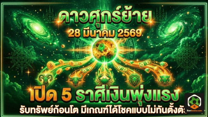 วันที่ 28 มีนาคม 2569 เป็นอีกหนึ่งจังหวะสำคัญทางโหราศาสตร์ เมื่อดาวศุกร์มีการเคลื่อนย้ายตำแหน่ง ส่งผลต่อทั้งเรื่องเงิน งาน เสน่ห์ และโชคลาภของหลายราศีอย่างชัดเจน โดยคำทำนายจากเพจ อาจารย์ไวท์ หมอดูโอปป้า ได้จัด 5 อันดับราศีเด่นที่มีเกณฑ์เงินพุ่งเข้า รับทรัพย์แบบกะทันหัน และมีโอกาสรวยฉับพลัน ใครที่ติดตาม ดวงวันนี้ ต้องเช็กให้ดี เพราะรอบนี้มีหลายราศีที่ดวงการเงินเริ่มกลับมาแรง