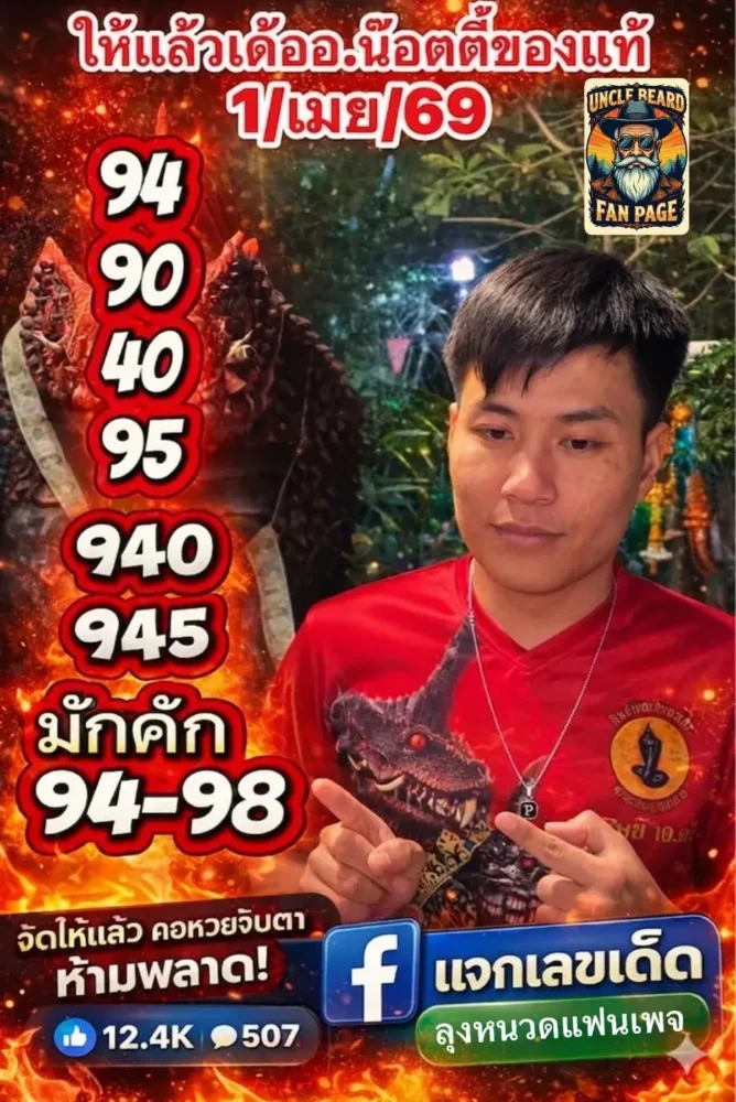 น็อตตัวตึงปล่อยหมัดเด็ดงวด 1 เม.ย. 69! เลขเด็ด 94 นำขบวน ชุดแรง 90-40-95 เสริมทัพ 940-945 คอหวยแห่ส่องหนักลุ้นรับโชค