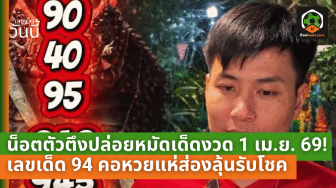 น็อตตัวตึงปล่อยหมัดเด็ดงวด 1 เม.ย. 69! เลขเด็ด 94 นำขบวน ชุดแรง 90-40-95 เสริมทัพ 940-945 คอหวยแห่ส่องหนักลุ้นรับโชค