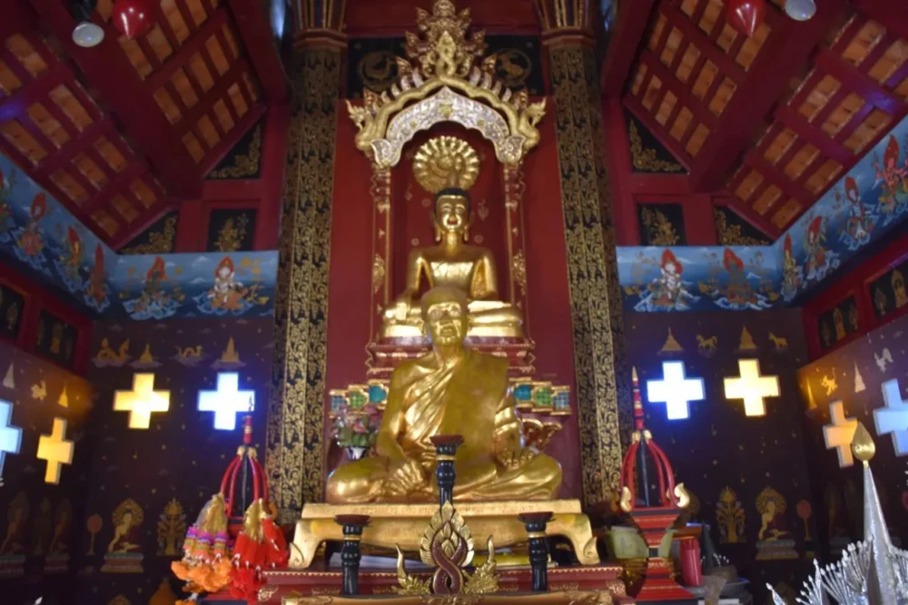 จุดที่ทำให้ทริปนี้กลายเป็นข่าวฮือฮา เกิดขึ้นช่วงเสี่ยงโชคภายในวัด เพราะภายในวิหารไม้ไม่อนุญาตให้จุดธูปเทียน จึงใช้เซียมซีแทน หนึ่งในนักท่องเที่ยวเขย่าได้เลข 27 ก่อนจะออกมาจุดธูปเสี่ยงทายหน้ารูปหล่อหลวงพ่อทวดองค์ใหญ่