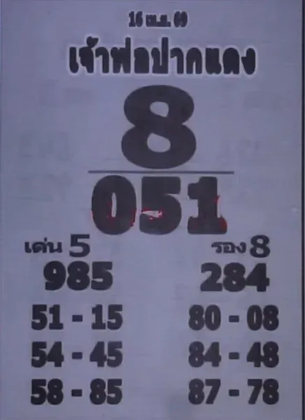 ส่วนเลข 3 ตัวที่น่าสนใจมีทั้ง 051, 985 และ 284 ซึ่งล้วนเป็นชุดที่หลายคนอาจหยิบไปต่อยอดลุ้นโชคในงวดนี้