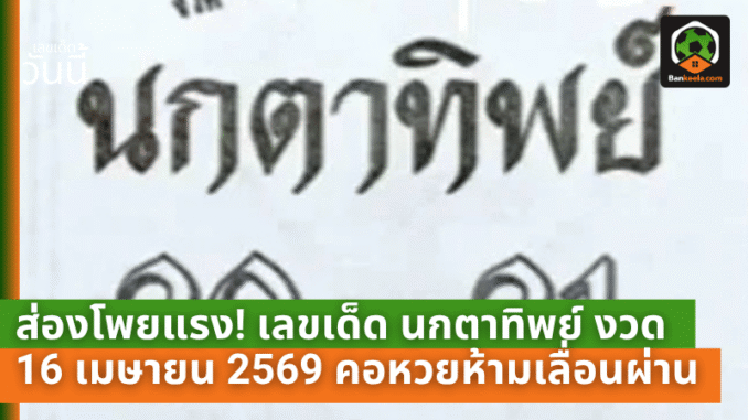 กระแสของ นกตาทิพย์ งวดวันที่ 16 เมษายน 2569 กลับมาถูกพูดถึงอีกครั้งในหมู่คอหวย หลังปล่อยโพยตัวเลขชุดใหม่ออกมาแบบชัด ๆ อ่านง่าย และหยิบไปลุ้นต่อได้ทันที ใครที่ยังไม่มีเลขในใจ งวดนี้ถือเป็นอีกหนึ่งโพยที่น่าจับตาไม่น้อย เพราะเลขที่ออกมาดูแล้วมีจังหวะให้ต่อยอดได้หลายทาง