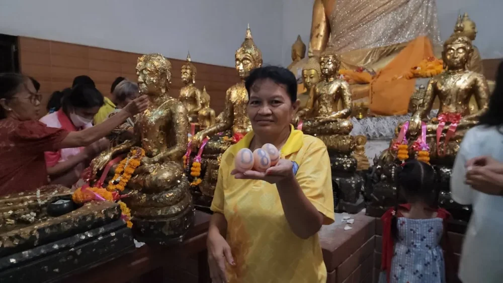 ระหว่างร่วมพิธีภายในโบสถ์ นางสาวสุรินทร์ได้เสี่ยงทายเลขมงคลด้วยการล้วงไข่ในไหทองคำ ก่อนจะได้เลข 086 กลับออกมาแบบชัดเจน เจ้าตัวเตรียมนำไปเสี่ยงโชคในงวดวันที่ 16 เมษายน 2569 หวังว่าหากมีโชคใหญ่จะกลับมาทำบุญที่วัดอีกครั้ง ทำให้เลขชุดนี้กลายเป็น เลขเด็ด ที่ถูกพูดถึงทันทีในหมู่นักเสี่ยงโชค