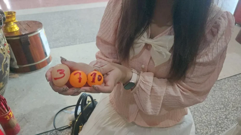 คำอธิษฐานของทั้งสองเน้นไปที่ความก้าวหน้าในหน้าที่การงาน และขอให้ความรักมั่นคงราบรื่น ไม่มีอุปสรรคเข้ามาขัดขวาง จากนั้นจึงไม่พลาดเข้าขอโชคลาภจากตาทองงิ้วราย ด้วยการล้วงลูกไข่ออกจากโถ 3 ลูก ได้ตัวเลข 3, 7 และ 10 ซึ่งกลายเป็นเลขเด่นที่ถูกจับตาทันที