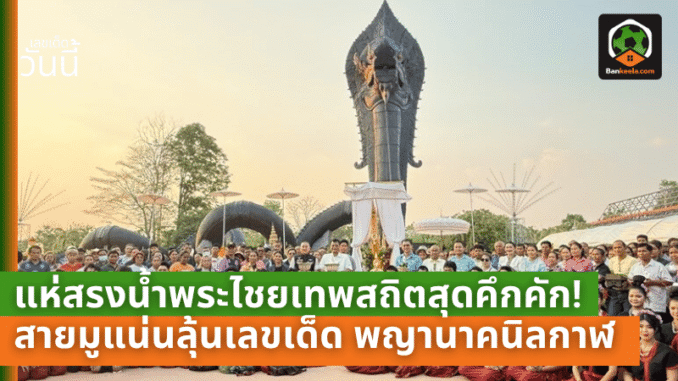 อีกจุดที่ถูกจับตามากที่สุดคือบริเวณบวงสรวง “พญานิลกาฬนาคราช ปู่องค์ดำ” ซึ่งมีผู้ศรัทธานำดอกไม้ ธูป เทียน มาสักการะอย่างต่อเนื่อง พร้อมจุดธูปเสี่ยงทายหาเลขนำโชค เพื่อนำไปลุ้นในงวดวันที่ 16 เมษายน 2569 ทำให้บรรยากาศรอบจุดขอพรและแผงสลากภายในพื้นที่คึกคักเป็นพิเศษ