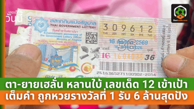 กลายเป็นเรื่องราวดวงเฮงที่คอหวยพูดถึงกันไม่น้อย เมื่อสองตายายจากบ้านท่านายโศก ตำบลเฝ้าไร่ อำเภอเฝ้าไร่ จังหวัดหนองคาย ถูกรางวัลที่ 1 รับเงิน 6 ล้านบาท หลังได้เลขจากหลานชายตัวน้อยที่เคยบอกแม่นมาแล้วหลายครั้ง โดยงวดนี้หลานบอกสั้นๆ แค่เลข 12 แต่กลับพาโชคใหญ่มาเต็มๆ