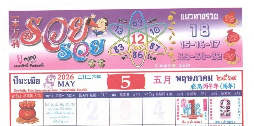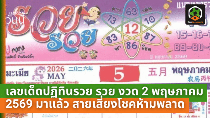 กระแส เลขเด็ด รับงวดใหม่เริ่มคึกคักอีกครั้ง และหนึ่งในโพยที่คอหวยจับตาอยู่เสมอก็คือ “ปฏิทินรวย รวย” ที่รอบนี้ปล่อยชุดตัวเลขออกมาให้ลุ้นกันแบบชัดๆ สำหรับงวดวันที่ 2 พฤษภาคม 2569 ใครที่กำลังมองหา แนวทางหวย ไว้ประกอบการตัดสินใจ บอกเลยว่างวดนี้มีให้ครบทั้งเลข 2 ตัวและ 3 ตัวแบบเลือกกันได้ตามถนัด