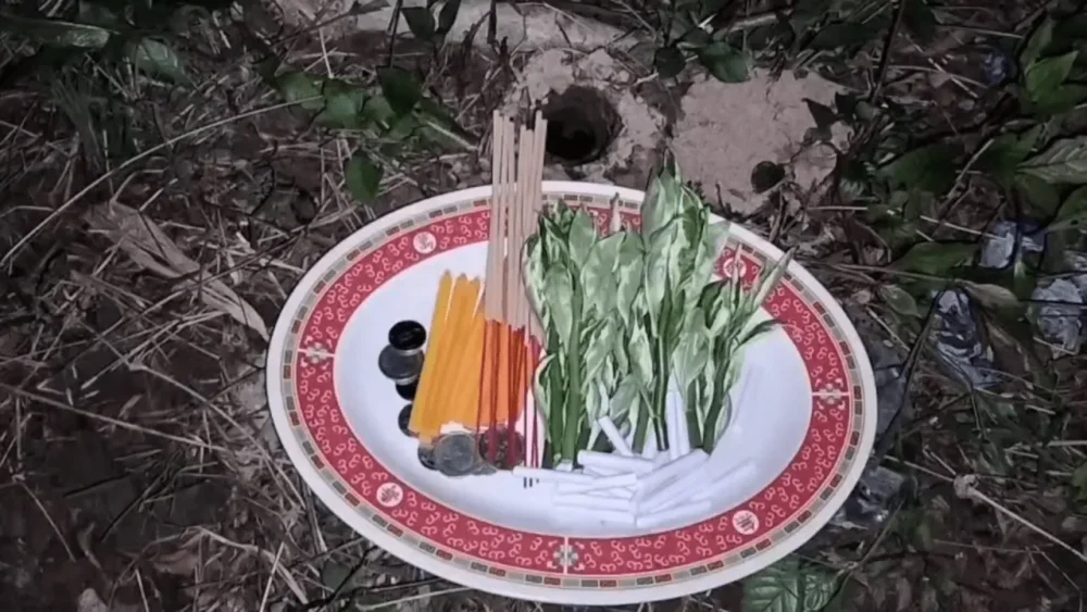 หลังพบรูที่เชื่อว่าถูกต้องตามตำรา กลุ่มคอหวยได้เริ่มทำพิธีอย่างตั้งใจ มีการจุดธูปบอกกล่าวเจ้าที่เจ้าทาง เพื่อขอเปิดทางโชคลาภ จากนั้นยกขัน 5 บอกกล่าวพญาบึ้ง พร้อมอธิษฐานขอเลขเพื่อนำไปเสี่ยงโชคในงวดที่จะถึงนี้