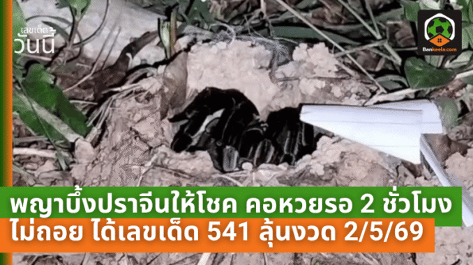 หลังรอคอยอย่างใจจดใจจ่อ พญาบึ้งได้นำกระดาษตัวเลขขึ้นมาให้จำนวน 3 แผ่น เมื่อเปิดดูพบว่าเป็นเลข 5 4 1 ทำเอาบรรดานักเสี่ยงโชคต่างรีบหยิบโทรศัพท์ขึ้นมาถ่ายเก็บไว้ทันที เพื่อนำไปตีเป็นแนวทางซื้อลอตเตอรี่ งวดวันที่ 2 พ.ค. 69