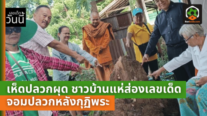 เห็ดปลวกผุดพรึบ! ชาวบ้านแห่ส่องเลขเด็ดที่จอมปลวกหลังกุฏิพระ