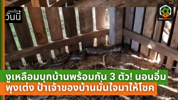 งูเหลือมบุกบ้านพร้อมกัน 3 ตัว! นอนอิ่มพุงเต่ง ป้าเจ้าของบ้านมั่นใจมาให้โชค