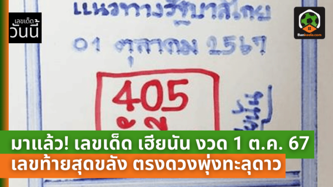 มาแล้ว! เลขเด็ด เฮียนัน งวด 1 ต.ค. 67 เลขท้ายสุดขลัง ตรงดวงพุ่งทะลุดาว