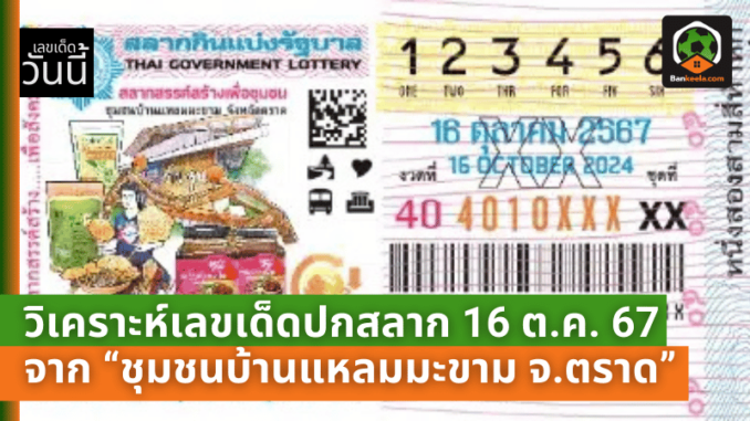 ใกล้เข้ามาแล้วสำหรับการออกรางวัล สลากกินแบ่งรัฐบาล งวดวันที่ 16 ตุลาคม 2567 ที่คอหวยต่างจับตา และในครั้งนี้ การวิเคราะห์เลขจาก ปกสลาก กลายเป็นแนวทางหนึ่งที่น่าสนใจเป็นอย่างยิ่ง โดยปกสลากงวดนี้เป็นภาพของ “ชุมชนบ้านแหลมมะขาม จังหวัดตราด” ซึ่งหลายครั้งที่ผ่านมา ตัวเลขที่เกี่ยวข้องกับภาพบนปกมักจะปรากฏในผลการออกรางวัล ทำให้การวิเคราะห์ครั้งนี้ยิ่งได้รับความสนใจเป็นพิเศษ