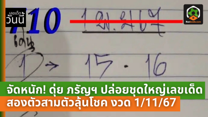 เลขเด็ดจากดุ่ย ภรัญฯ งวด 1/11/67 ที่ควรติดตามมีดังนี้: