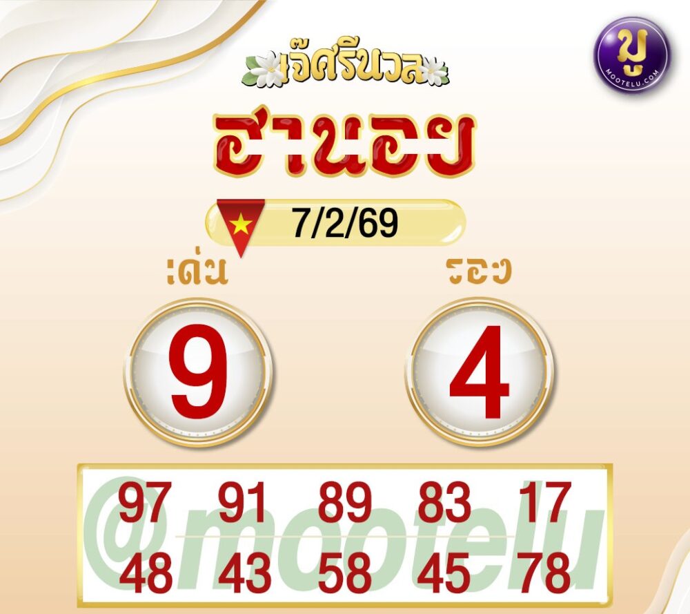 เจ๊ศรีนวลยังคงเน้นเลขพลังสูงอย่าง 9 มาคู่กับเลขนิ่งสวยอย่าง 4 ทำให้เป็นชุดที่น่าเล่นมากในงวดนี้ เพราะรวมเลขร้อนแรงเกือบทั้งแผง