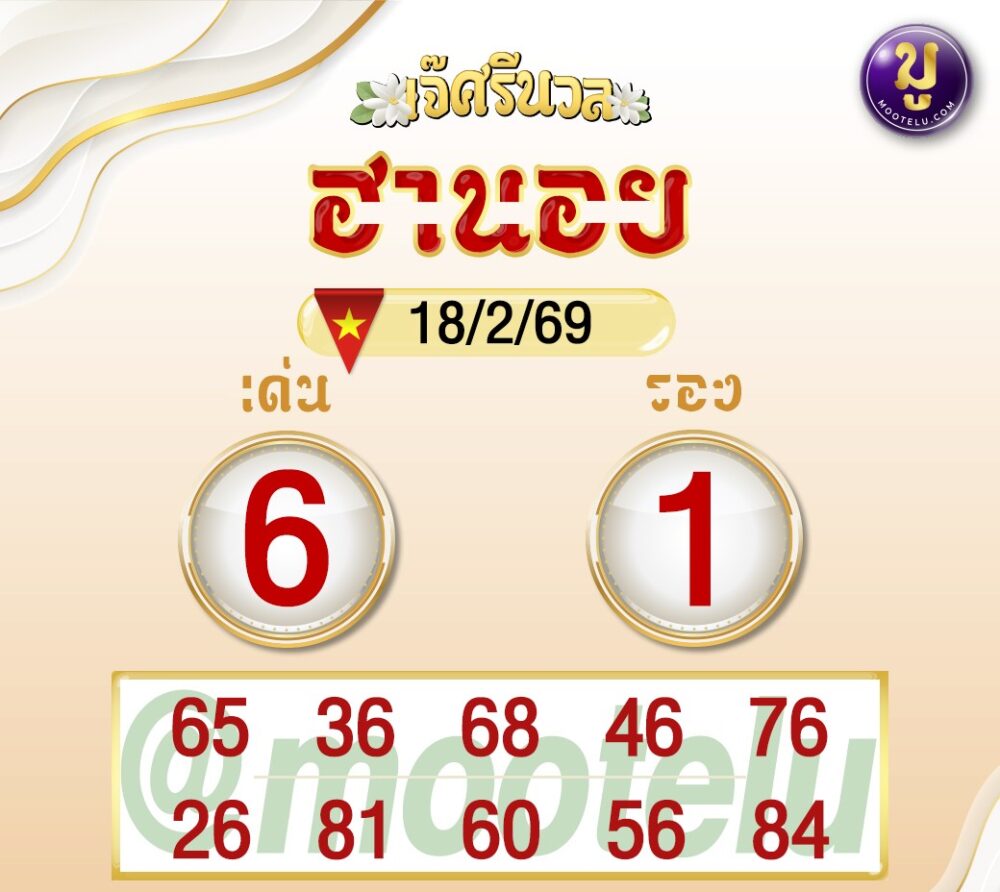 สำนักเจ๊ศรีนวลยังติดเลข 6 เช่นกัน! ส่วนเลขรองเป็น 1 ที่มีสถิติเด้งขึ้นมาในงวดก่อน ทำให้แนวทางทั้งสองตัวนี้มีน้ำหนักดีมาก