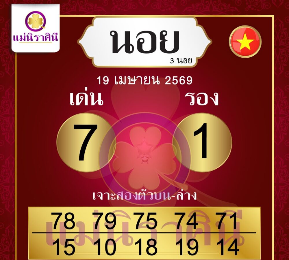 แม่นิราศินีงวดนี้ให้เลขเด่นมาแบบชัดเจน เน้น 7 จับคู่ 1 แล้วแตกออกเป็นชุดเลขสองตัวที่เล่นตามได้ง่ายทั้งบนและล่าง เหมาะกับสายชอบโพยตรงไม่ต้องคิดเยอะ