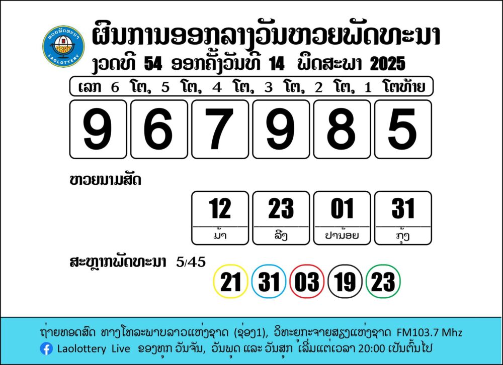 ຖ່າຍທອດສົດການອອກເລກລາງວັນຫວຍພັດທະນາ 14/5/2025
