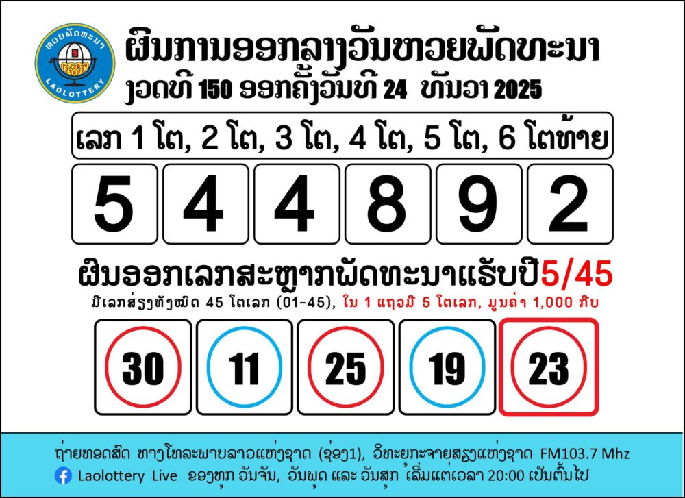 ຖ່າຍທອດສົດການອອກເລກລາງວັນຫວຍພັດທະນາ 24/12/2025