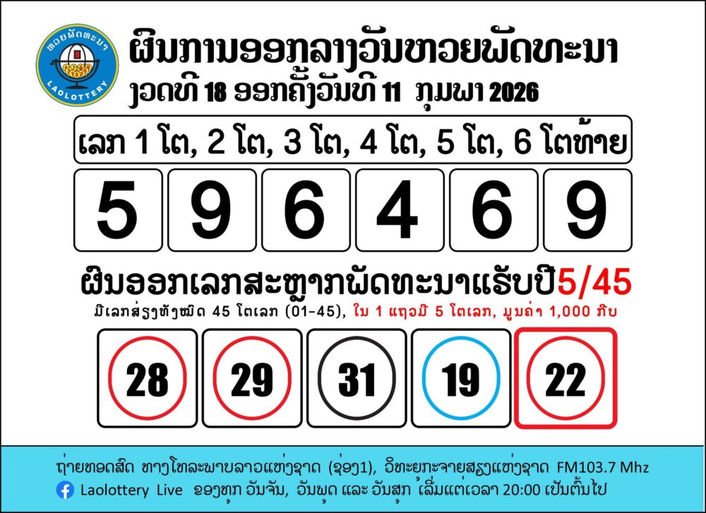 ตรวจหวยลาว (ຫວຍລາວ) งวดประจำวันที่ 11 กุมภาพันธ์ 2569