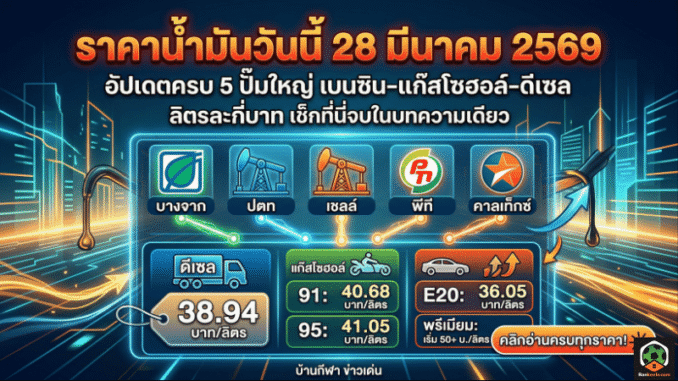 ราคาน้ำมันวันนี้ 28 มีนาคม 2569 สรุปภาพรวม