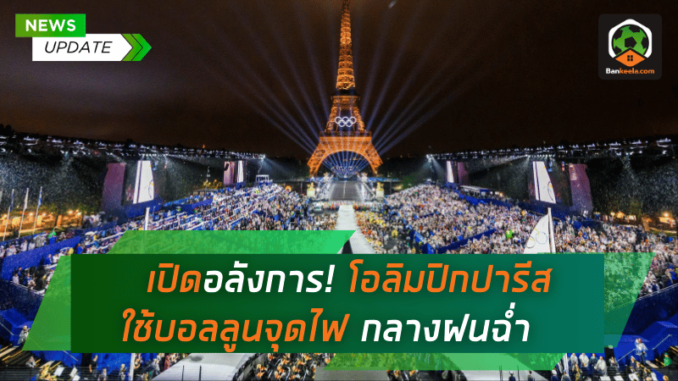 พิธีเปิดโอลิมปิกครั้งนี้จัดขึ้นเมื่อค่ำวันที่ 26 กรกฎาคม 2567 ตามเวลาท้องถิ่น ซึ่งช้ากว่าประเทศไทย 5 ชั่วโมง โดยมีการจัดขบวนพาเหรดเรือ 206 ชาติ ล่องแม่น้ำแซน ผ่านแลนด์มาร์กสำคัญทั่วกรุงปารีส ทีมชาติไทยล่องเรือเข้าพิธีเปิดกลางสายฝนฉ่ำ ทำให้นักกีฬาต้องสวมเสื้อกันฝนขณะร่วมพิธี ส่วนการจุดไฟกระถางคบเพลิง เจ้าภาพได้แหวกแนวจุดไฟบนบอลลูนยักษ์