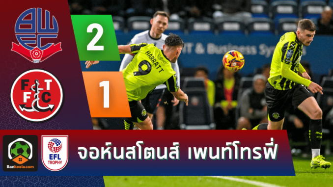 การแข่งขันศึก จอห์นสโตนส์ เพนท์โทรฟี่ 2024 กลุ่ม D ระหว่าง โบลตัน วอนเดอเรอส์ พบกับ ฟลีตวู้ด ทาวน์ จบลงด้วยชัยชนะของโบลตันที่โชว์ฟอร์มเหนือชั้น พลิกสถานการณ์คว้าชัย 2-1 จากการทำสองประตูของ แอรอน คอลลินส์ ในช่วงทดเวลา ทำให้ทีมเก็บสามแต้มสำคัญและขึ้นนำเป็นจ่าฝูงของกลุ่ม D