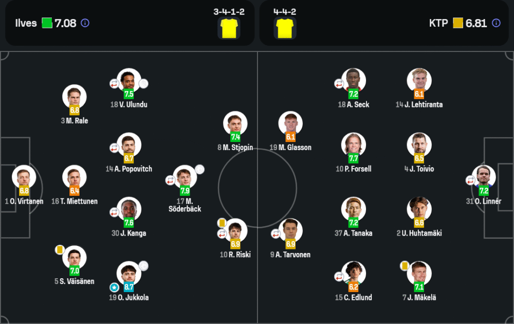 นักเตะเด่น: โอยวา ยุคโคล่า (8.7), มาริอุส โซเดอร์แบ็ค (7.9), จาร์เดล คังก้า (7.6)