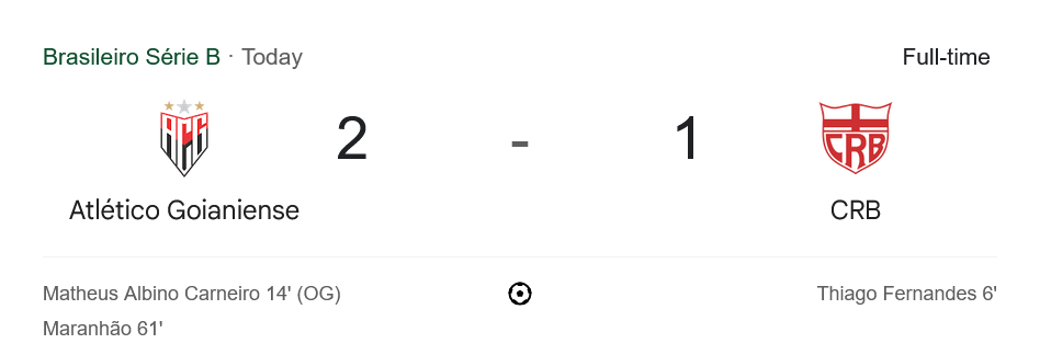 เกมนี้ที่สนามของแอตเลติโก้ กัวเนนเซ่ เริ่มต้นด้วยความดุเดือดสมศักดิ์ศรีสองทีมอันดับหัวตาราง โดย ผลบอลสด จาก บ้านผลบอล รายงานว่านาที 6 ซีอาร์บีได้ประตูนำไวจาก ติอาโก้ เฟอร์นันเดส แต่เจ้าถิ่นตีเสมออย่างรวดเร็วจากการทำเข้าประตูตัวเองของ มาธีอุส อัลบิโน่ นาที 14 ก่อนที่ครึ่งหลังเจ้าบ้านจะมาได้ประตูชัยจาก วิลเลียน มารันเญา นาที 61 ปิดเกมเฉือน 2-1 เก็บ 3 แต้มได้สำเร็จ