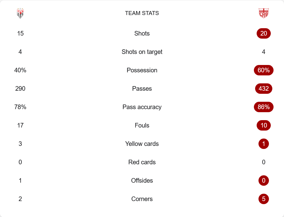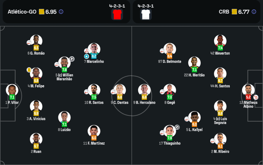 เกมนี้ แอตเลติโก้ กัวเนนเซ่ มาในระบบ 4-2-3-1 เน้นเกมรุกตรงกลางและการครองบอลสั้นตามสไตล์บอลบราซิล พวกเขาอาศัยจังหวะสปีดของ มาร์เซลินโญ่ และความแม่นของ วิลเลียน มารันเญา ในจังหวะเซ็ตพีซได้ผลดี ขณะที่ ซีอาร์บี ใช้ 4-2-3-1 เหมือนกันแต่เน้นสปีดโต้กลับและความแข็งแกร่งในแดนกลาง การ วิเคราะห์บอล ชี้ให้เห็นว่าเจ้าถิ่นคุมเกมและสร้างสรรค์โอกาสได้มากกว่า แม้เปอร์เซ็นต์ครองบอลจะเป็นรองเล็กน้อยแต่ความเฉียบคมมากกว่าชัดเจน