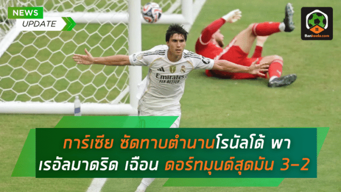 ค่ำคืนวันที่ 5 กรกฎาคมที่ผ่านมา สนามกลางที่ระอุด้วยเสียงเชียร์และไฟในดวงตาของแฟนบอลทั่วโลก กลายเป็นเวทีโชว์ความโหดของ กอนซาโล่ การ์เซีย ดาวยิงหนุ่มเลือดร้อนของ เรอัล มาดริด ที่ระเบิดฟอร์มร้อนแรงสุดขีด ส่องประตูตั้งแต่ต้นเกม พา “ราชันชุดขาว” เบียดเอาชนะ โบรุสเซีย ดอร์ทมุนด์ สุดระทึก 3-2 ในศึก ฟีฟ่า คลับ เวิลด์ คัพ รอบแปดทีมสุดท้าย พร้อมทำสถิติยิงประตูในรายการเดียวเทียบเท่ากับตำนานอย่าง คริสเตียโน่ โรนัลโด้ ได้อย่างน่าตะลึง