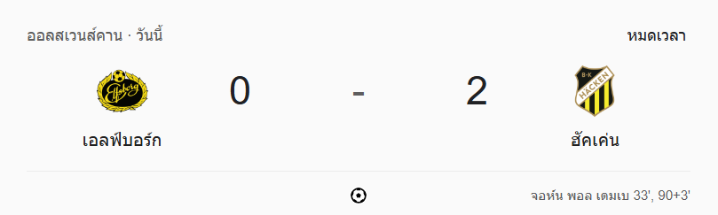 จบเกม เอล์ฟส์บอร์ก 0-2 ฮัคเค่น ทีมเยือนเล่นด้วยความเด็ดขาด ทั้งแนวรับและเกมรุก ประตูทั้งสองลูกของ John Paul Dembe คือคีย์แมนตัวจริงที่พาทีมคว้าชัย ส่วนเจ้าถิ่นแม้จะครองเกมบุกแต่ไร้ความคม สุดท้ายโดนลงโทษเต็มๆ เกมนี้ยืนยันสถานะของฮัคเค่นในออลสเวนส์คานได้อย่างยอดเยี่ยม