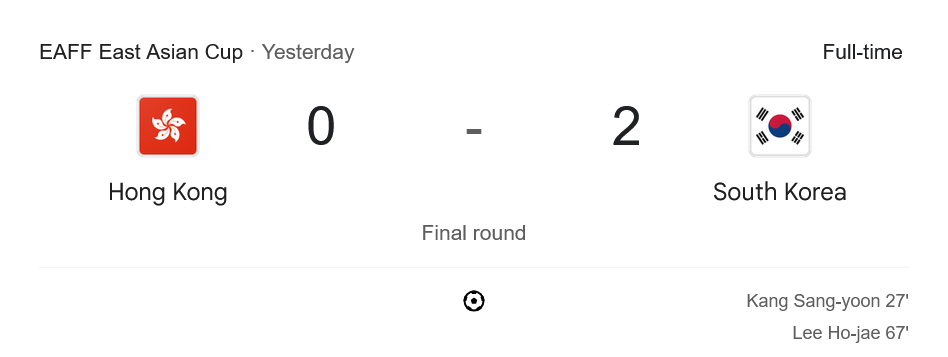 หลังเกมนี้ เกาหลีใต้เก็บ 6 แต้มเต็มจาก 2 นัด รั้งจ่าฝูงแบบไม่ต้องลุ้น ขณะที่ฮ่องกงแพ้รวด 2 นัด หล่นไปอยู่ท้ายตารางแบบหมดลุ้นแชมป์เรียบร้อย