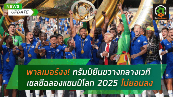 บรรยากาศที่สนามในสหรัฐอเมริกาคืนนั้นเต็มไปด้วยเสียงเชียร์กึกก้อง เมื่อเชลซีสร้างผลงานสุดยอดคว้าแชมป์โลกสโมสรไปครองได้สำเร็จเหนือเปแอสเช 3-0 ท่ามกลางความปลื้มปีติของนักเตะและแฟนบอล “สิงห์บลูส์” แต่ขณะที่นักเตะเตรียมยืนเรียงแถวเพื่อรับถ้วยและฉลองแบบทีม ทรัมป์ที่มาร่วมในฐานะแขกผู้มีเกียรติกลับไม่ยอมลงจากเวที ทั้งที่หน้าที่การมอบรางวัลและทักทายทีมงานจบไปแล้ว