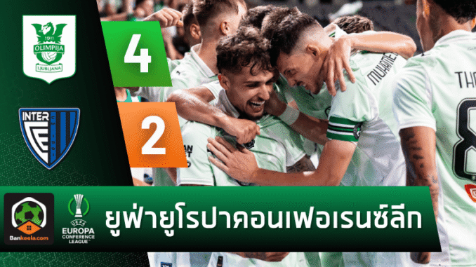 ศึกยูฟ่ายูโรปา คอนเฟอเรนซ์ลีก รอบคัดเลือกรอบสอง นัดแรก ณ สนามสตาดิโอน สโตซิเซ่ จบลงอย่างสุดมันเมื่อ เอ็นเค โอลิมปิยา ลจุบจาน่า ทีมจากสโลวีเนีย พลิกสถานการณ์จากการตามหลังถึงสองครั้งในครึ่งแรก กลับมารัวแซง อินเตอร์ คลับ เอสคัลเดส จากอันดอร์รา 4-2 พร้อมคว้าความได้เปรียบก่อนไปลุยนัดที่สอง ซึ่งแมตช์นี้ บ้านผลบอล รายงาน ผลบอลสด แบบเรียลไทม์ชนิดนั่งไม่ติด เกิดดราม่าทั้งใบเหลือง, ฟาวล์ และประตูสุดโหดตลอด 90 นาที