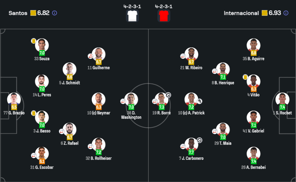 อัลบาโร่ บาร์เรอัล (7.9), กาเบรียล บอนเทมโป (6.9), ลูคา เมย์เรลเลส (6.4), อิกอร์ วินิซิอุส (6.9), โรบินโญ่ จูเนียร์ (6.9)