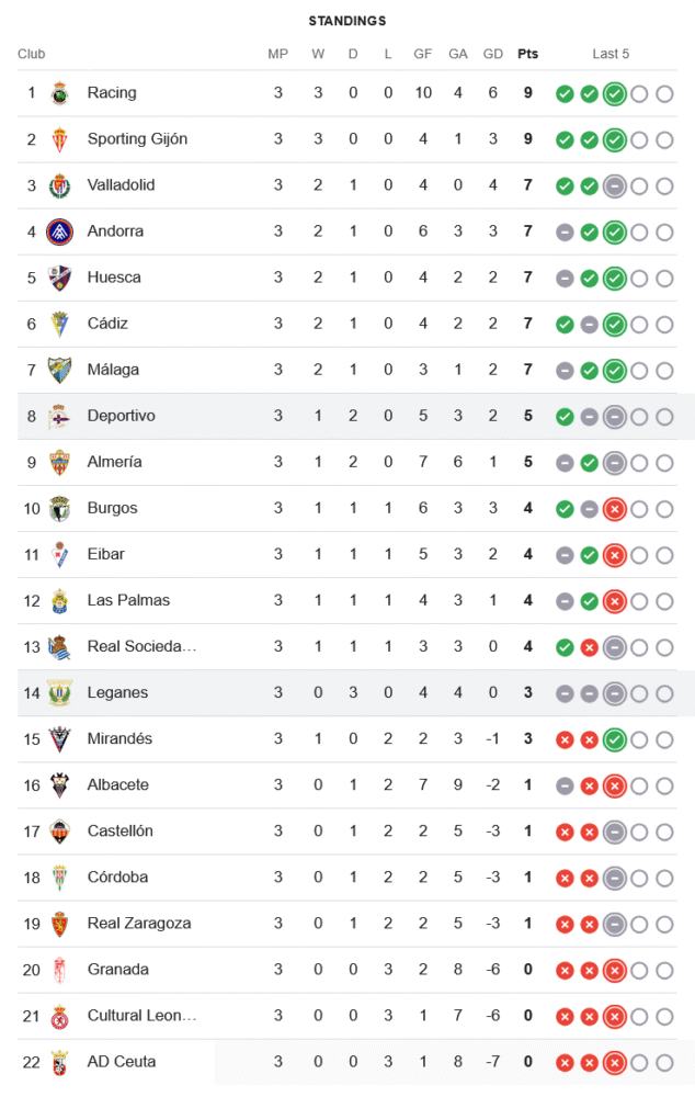 โปรแกรมใน ตารางบอล นัดต่อไป เดปอร์ติโบต้องบุกเยือนมิรันเดสวันที่ 13 กันยายน ขณะที่เลกาเนสมีงานหนักออกไปเยือนกรานาดาในวันที่ 15 กันยายน สองนัดนี้ถือว่าสำคัญต่อการสร้างความมั่นใจทั้งคู่