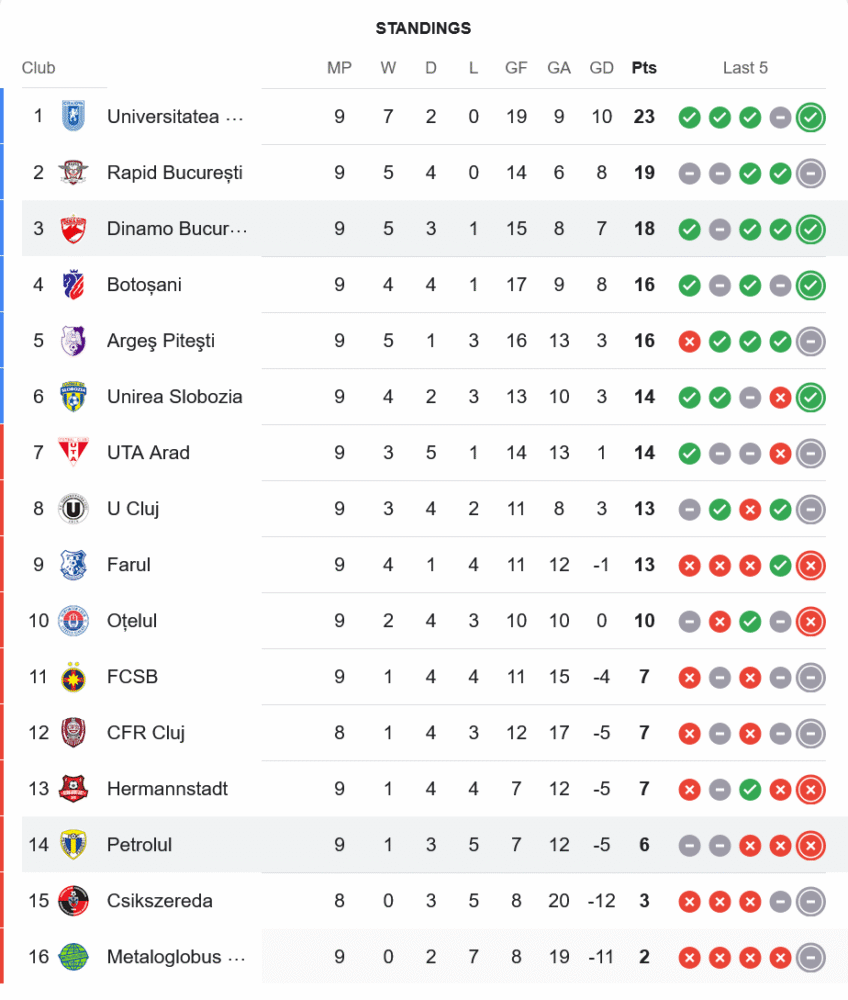 ชัยชนะนัดนี้ส่ง ดินาโม บูคาเรสต์ ขึ้นไปมี 18 คะแนนจาก 9 นัด รั้งอันดับ 3 ไล่จี้จ่าฝูงอยู่ไม่ไกล เปิดโอกาสลุ้นแชมป์เต็มตัว ขณะที่ ปิโตรลูล อาการน่าเป็นห่วง หล่นไปอยู่อันดับ 14 มีเพียง 6 แต้มจาก 9 เกม เสี่ยงตกชั้นหากไม่เร่งฟอร์มโดยด่วน