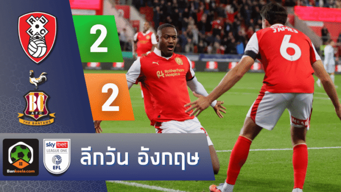 บ้านกีฬา เกาะติด ผลบอลสด ลีกวัน อังกฤษ คู่มันระดับสัปดาห์ที่ ร็อตเธอร์แฮม ยูไนเต็ด เปิด AESSEAL New York Stadium รับมือจ่าฝูงฟอร์มแรง แบรดฟอร์ด ซิตี้ เกมนี้เดือดตั้งแต่นาทีแรก เจ้าถิ่นออกนำห่างสองลูกเหมือนทุกอย่างอยู่ในมือ ก่อนโดนทีมเยือนคัมแบ็กสุดโหด เสมอ 2-2 แบ่งแต้มแบบทิ้งรอยลอยช้ำให้สาวกเดอะมิลเลอร์ส ส่วนแฟนทัพมินซอตส์โลนออกจากสนามแบบโล่งอก