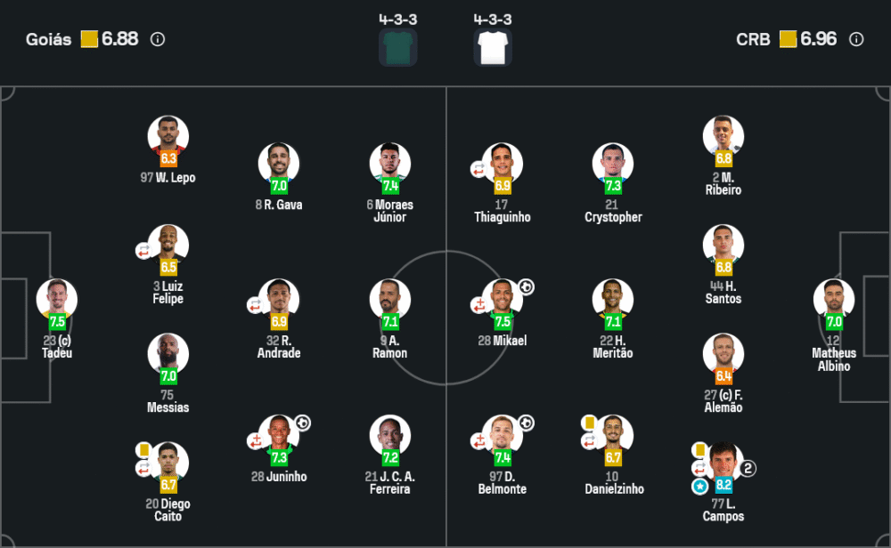 กองหลัง: ดีเอโก ไคโต (6.7), ลุยซ์ เฟลิเป้ (6.5), เมสเซียส (7.0), วี. เลโป (6.3)