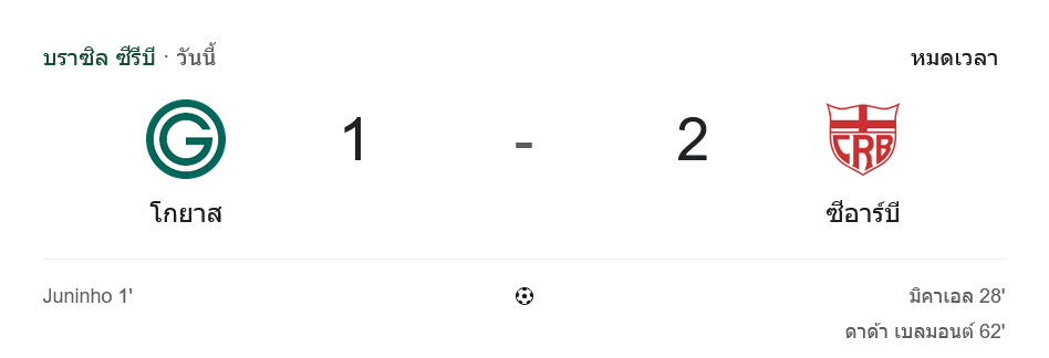 ศึก คัมปิโอนาโต บราซิเลียโร ซีรีบี เกมสุดเข้มข้นระหว่าง โกยาส เปิดบ้านดวล ซีอาร์บี จบลงด้วยชัยชนะของทีมเยือน 2-1 ในแมตช์ที่แฟนบอลต่างต้องบอกว่า “ครบเครื่องทั้งความมันส์และความดราม่า” โดยมี ลีโอ กัมโปส กลายเป็นฮีโร่ของเกมนี้ ยิง 1 จ่าย 1 พาทีมบุกเก็บสามแต้มสำคัญ พร้อมเขย่าพื้นที่หัวตารางอย่างเร้าใจ ซึ่ง บ้านกีฬา เก็บรายละเอียด ผลบอลสด และภาพรวมเกมนี้มาฝากกัน