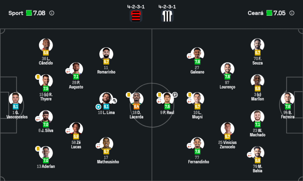 ลูคัส ลิมา เพลย์เมกเกอร์ของสปอร์ต เรซิเฟ่ คือจอมทัพตัวจริงในเกมนี้ เรตติ้ง 8.1 เขาคุมจังหวะเกม พาบอลทะลุแนวรับ สร้างสรรค์โอกาสยิงได้หลายครั้งและมีส่วนสำคัญกับจังหวะตีเสมอ ถือเป็นหัวใจของทีมในเกมนี้อย่างแท้จริง