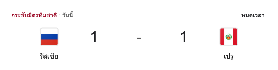 เกมอุ่นเครื่องระดับทีมชาติคู่เดือด รัสเซีย ดวล เปรู จบลงด้วยสกอร์ 1-1 จากมุมมองของ บ้านกีฬา นี่คือหนึ่งในเกมที่แฟนบอลเปิดจอรอดูผ่านหน้าเว็บเช็ก ผลบอลสด กันแบบไม่กะพริบ เพราะทั้งสองทีมต่างใช้แมตช์นี้เป็นเวทีทดลองระบบและเช็กความฟิตนักเตะ ก่อนลุยทัวร์นาเมนต์สำคัญช่วงปลายปี
