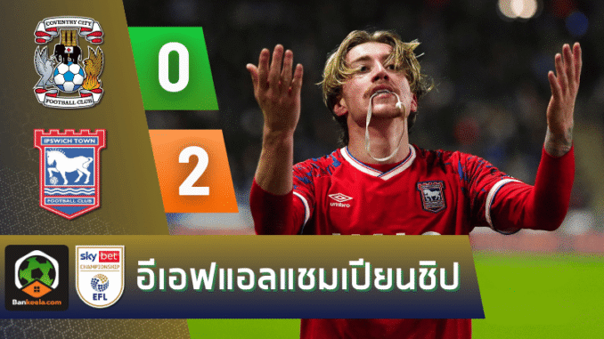 บ้านผลบอล สรุปหลังเกม แชมเปียนชิป อังกฤษ ดุเดือด! นูนเญซปั้น คลาร์ก–เบิร์นส์ กระซวกสองเม็ด อิปสวิชบุกฝังโคเวนทรี 2-0 เขย่าลุ้นแชมป์เดือดอีกรอบ
