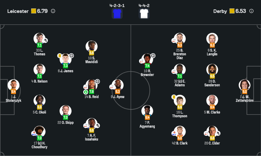 หัวใจเกมรุกของเลสเตอร์สมควรได้รับรางวัลนี้เต็ม ๆ เดคอร์โดวา-รีด ได้คะแนนสูงสุดของทีมที่ 7.6 ไม่ใช่แค่เพราะประตูขึ้นนำ 1-0 แต่เพราะการเคลื่อนที่ลงต่ำเชื่อมเกมระหว่างกลางกับริมเส้น ทำให้แนวรับดาร์บี้ต้องตามประกบจนเสียรูปทรงหลายครั้ง เขาช่วยเปิดพื้นที่ให้ เจมส์ มีจังหวะสอดขึ้นมาทำประตูที่สอง แถมยังเป็นคนคอยไล่เพรสด่านแรกทุกครั้งที่ทีมเสียบอล ถ้าไม่มีฟอร์มของเขา เกมนี้เลสเตอร์อาจไม่ปิดจ็อบสามแต้มได้ง่าย ๆ แบบนี้