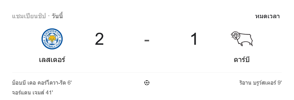 บ้านกีฬา พาเกาะสนามคิง เพาเวอร์ สเตเดียม เกมอีเอฟแอลแชมเปียนชิปที่จังหวะมันส์ตั้งแต่นาทีแรก ตามหน้า ผลบอลสด ระบุชัด เลสเตอร์ ซิตี้ เปิดบ้านเบียดชนะ ดาร์บี้ เค้าท์ตี้ 2-1 ในเกมที่รูปเกมสูสี แต่ความคมและความเยือกเย็นหน้าปากประตูเป็นฝั่งเจ้าถิ่นที่ทำได้ดีกว่า ก่อนเก็บสามแต้มสำคัญขยับจี้โซนเพลย์ออฟเข้าไปอีกก้าว