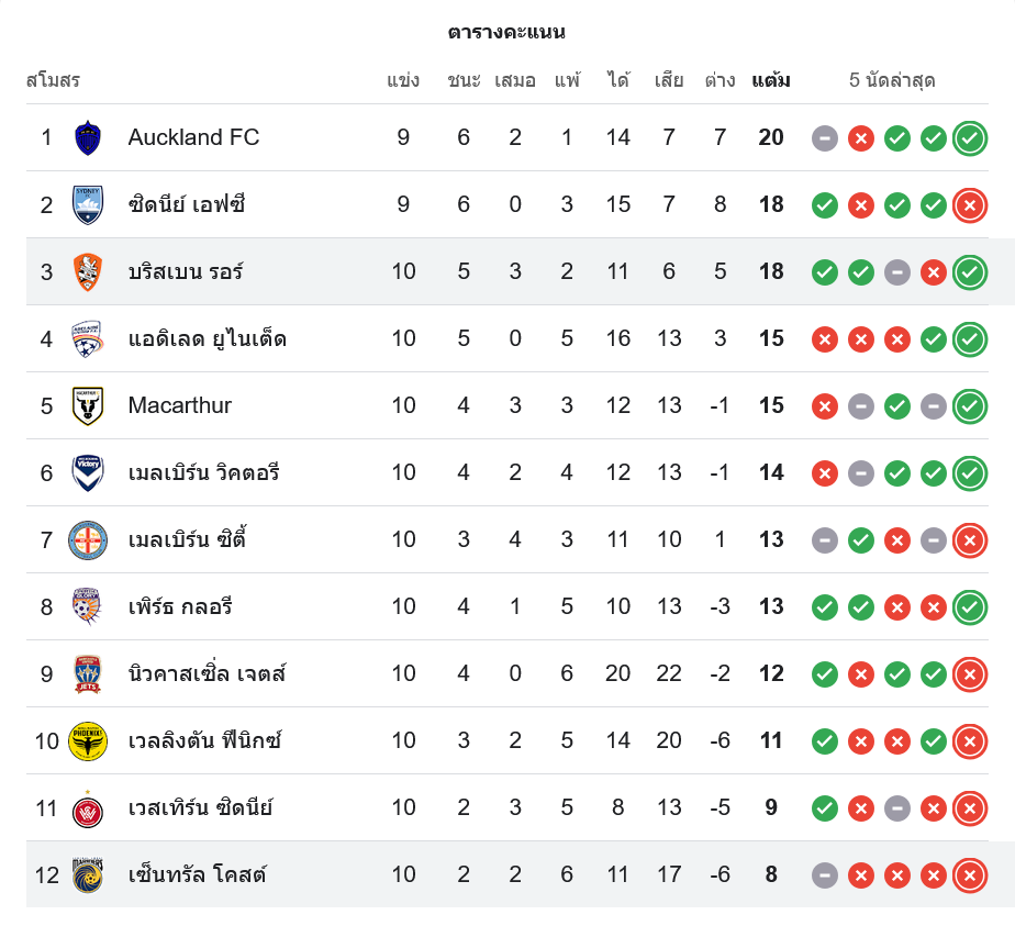 ชัยชนะเกมนี้ส่ง บริสเบน โรว์ ขยับขึ้นอันดับ 3 ของตาราง มี 18 คะแนนจาก 10 นัด ไล่จี้จ่าฝูงอย่าง Auckland FC ที่มี 20 แต้ม และรองจ่าฝูง Sydney FC ที่มี 18 แต้มเท่ากัน แต่ลูกได้เสียยังเป็นรองเล็กน้อย เส้นทางลุ้นหัวตารางและแชมป์ยังเปิดกว้าง ถ้ารักษามาตรฐานเกมเยือนแบบนี้ต่อไป โอกาสขึ้นนำก็ไม่ใช่เรื่องไกลเกินฝัน