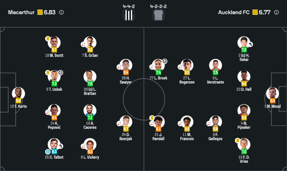 - 🔁 นาที 64 โอ๊คแลนด์เปลี่ยนรวดเดียวสามคน ส่ง เจค เกอร์ดวูด-รีช, แซม คอสโกรฟ และ กิเยร์โม่ เมย์ ลงแทน มาร์คุส ฟร็องซัวส์, ลาชลัน บรู๊ค และ ลีเบอร์ โรเจอร์สัน